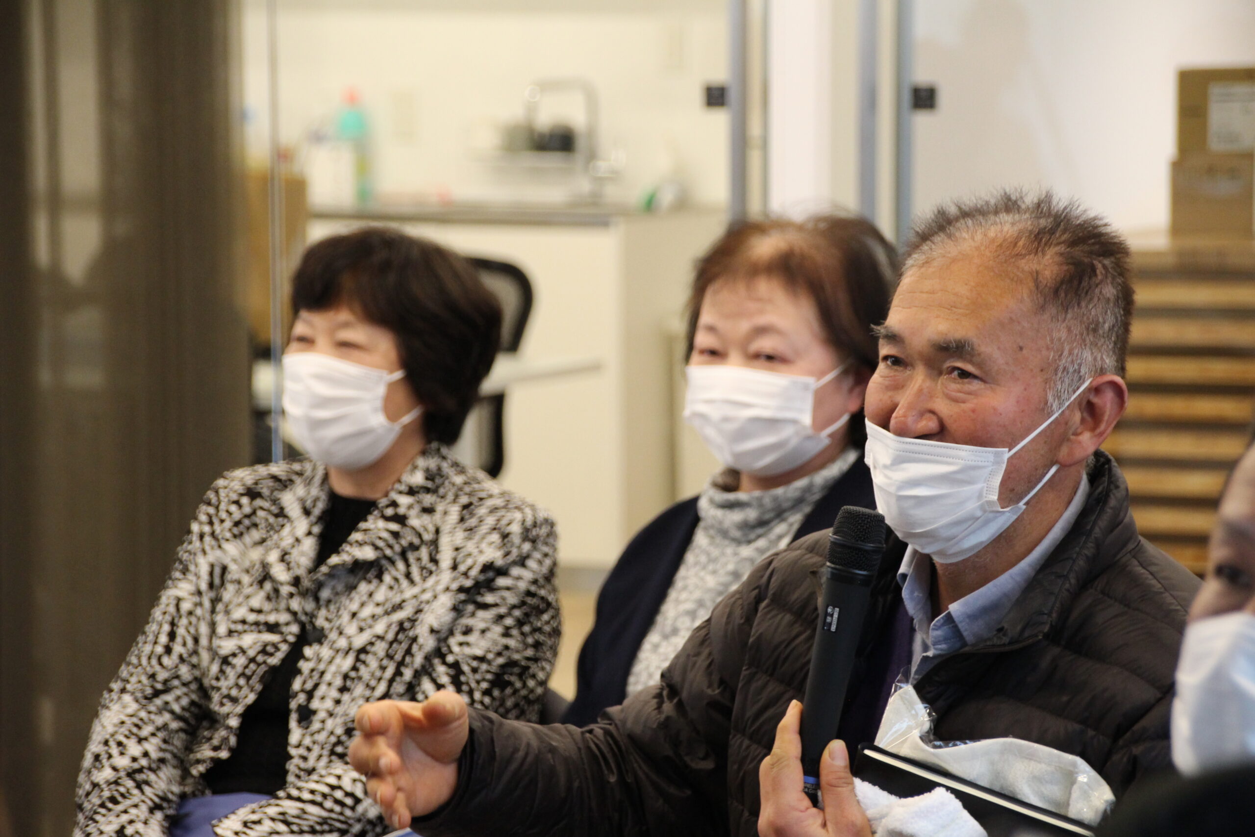 そして、トークは戸倉地区波伝谷漁港で撮影された戸倉かき生産部会のみなさんの一枚に。