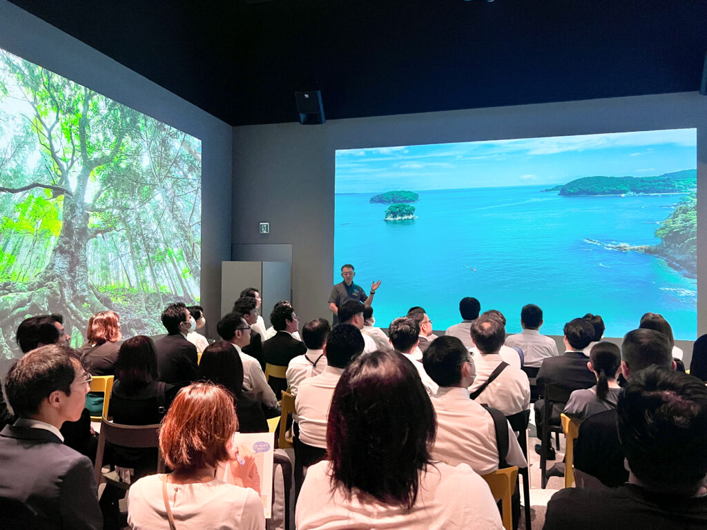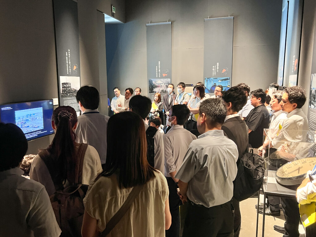 2024.07.15 来館レポート 【団体レポート】スズケングループ労働組合連合会の皆さまが企業研修で来館されました 2024年7月14日に、スズケングループ労働組合連合会の皆さまが、南三陸311メモリアルに来館されました。 今回、連合会としての総会に合わせて南三陸町で研修をされるとのことで、メモリアルの展示見学とラーニングプログラム、震災当時高校生だった方の語り部を聞くプログラムを受講されました。 館内入ってすぐのエントランスには、震災に関する数字やデータをまとめたパネル・立体地図があります。スタッフより、自分達が今立っている場所は震災後に10.8m嵩上げした土地であること、そしてこの施設の天井とほぼ同じくらいの地点に津波が到達したことをお伝えしました。また、旧防災対策庁舎を襲った津波の高さ15.5mのラインが壁に示されており、首を大きく傾けて見上げながら「想定外」の事実を目の当たりにしました。 その後、東日本大震災のエピソードをまとめた展示や証言映像、資料などが並ぶ展示ギャラリーへ進みます。旧防災対策庁舎の屋上で生存した方々の証言映像では、全員が食い入るように視聴していました。 ラーニングプログラムでご覧いただいたのは、「そのとき命が守れるか」というレギュラープログラムです。 震災時に、町内の指定避難所・避難場所の多くが津波に襲われたという南三陸町の事例から、自然災害発生時には想定をはるかに超えた事態に直面する可能性があるということを学びます。 震災当時中学生・高校生だった証言者たちが、あの日津波に襲われた避難所でどのような避難や対応をしたのか。そして消防士として人命救助にあたる職務についていた方々が、震災を経て「自分の命を守る」ということの意味をどのように捉え直したのか。 プログラム中には教訓から得られた問いかけと、参加者同士での対話の時間が設けられています。それらを通じて、新たな気づきや考えを手にすることができるのが、ラーニングプログラムの特長です。 最後に、参加された方々の感想をご紹介します。 福島から参加された方は、「こんなに自分で考えさせられるプログラムは初めてでした」と、多くの気づきがあったとのことでした。 「普段薬局などに関わることも多く、店舗にいる際にスタッフを先に避難させることもあります。その際に、自分自身の避難行動も考えておかなければいけないんだと気づかされました。」 名古屋から参加された方は、「被災された方々の映像は、正直心苦しいものがありました」とのことで、自分の命を守るということを深く考える時間になったとのことです。 「医療や福祉などの分野で働くエッセンシャルワーカーが多い企業。自分の命を守ることで、薬を必要とする人に届けられたり、介護福祉を必要とする人をサポートできたり、そうやって医療を必要とする方々の命を守ることにつながるんだと思いました。」 スズケングループ様は、医薬品卸売事業や介護福祉事業、ヘルスケア製品開発など、広く医療分野に関わる事業を展開する企業様ということもあり、「人を助ける」ということを強く意識する仕事が多いとのことです。そういった企業活動の中に、南三陸町をはじめ、東日本大震災被災地の教訓を生かしていただけたら幸いです。 ご来館いただき、誠にありがとうございました。