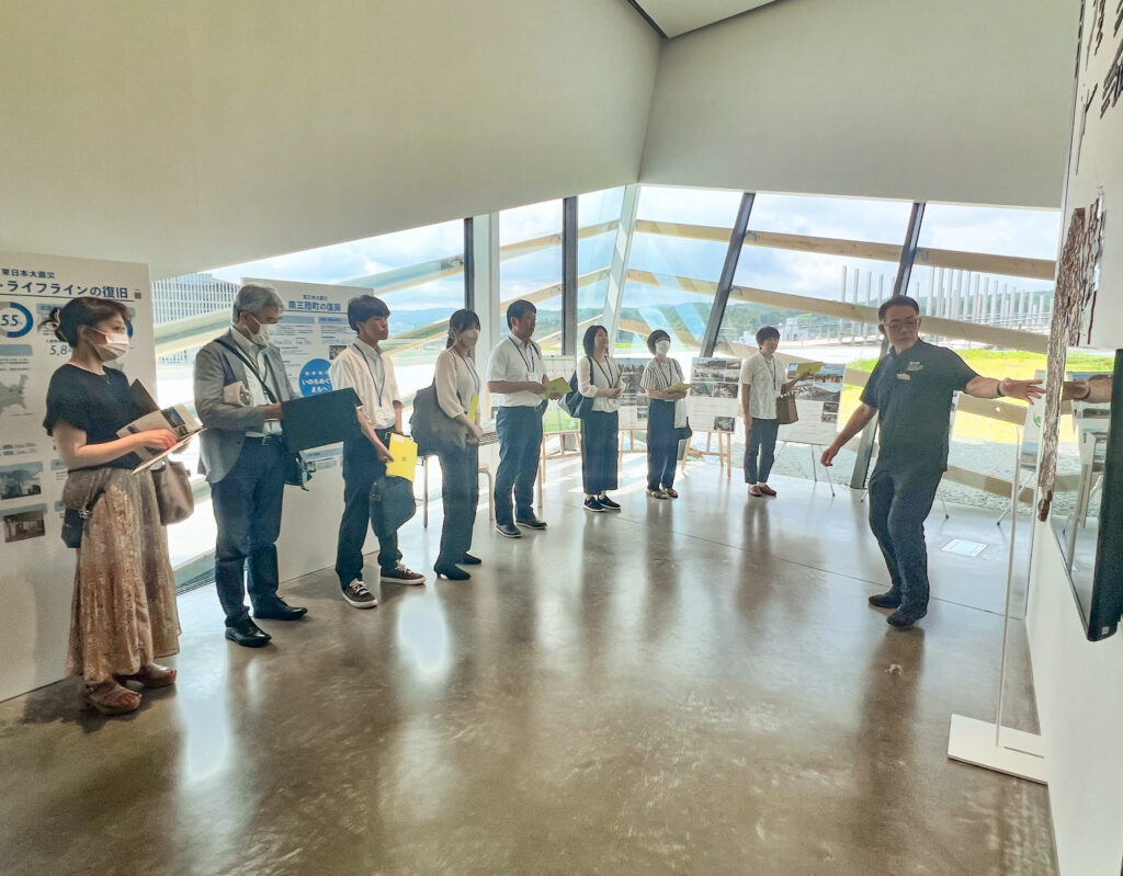 2024.08.22 来館レポート 【来館レポート】戸倉小学校の先生方が教員研修でご来館 8月21日、夏休み中の教員研修として、南三陸町内にある戸倉小学校の先生方が南三陸311メモリアルを訪問されました。 昨年に続き2回目の教員研修ですが、新しく赴任された先生や町外から通っていらっしゃる先生も多いため、あらためて震災のことや地元の戸倉地区のことを学びたいという目的で、今年もご来館いただきました。 まず初めに、震災時の南三陸町の概況や防災対策庁舎の建設理由、東日本大震災時にチリ地震津波からの教訓がどう生かされたのかなどを、エントランスでお話ししました。 メインとなるラーニングプログラムは、4月に公開されたレギュラープログラム3「いのちを想う」をご覧いただきました。 大勢の人と避難場所にいるという安心感が危険を察知する感覚を鈍らせてしまうことがあることを学ぶとともに、当時の小中学生や漁師たちの証言から、彼らが被災後をどう生きてきたのかに耳を傾け、考えるためのプログラムです。 南三陸311メモリアルのラーニングプログラムでは、「この状況で、あなたならどうしますか?」という問いかけが参加者に投げかけられます。 レギュラープログラム3「いのちを想う」では、震災時の実際の避難行動による反省を口にした町民の証言をヒントにした問いかけとなっており、先生方もその理由を考えながら対話を重ねていました。 証言映像を観ながら、投げかけられた様々な問いについて対話しながら、参加者同士で考え合うというのが、当館のラーニングプログラムの特長です。当時この町で経験したときの様子を話したり、普段の子どもたちの様子を思い出しながら対話されている姿が印象的でした。 館内見学後に、先生方に感想を聞かせていただきました。 戸倉小学校に赴任して2年目のある先生は、昨年の研修で見たプログラムも覚えているとのことでした。「今年見た新しいプログラムは、より子ども目線で作られていると感じました。単級学校なので、普段からより深く子どもたちとやり取りをしています。今担当している子どもたちとも、また学びに来たいとな思いました。」 岩手県内陸部のご出身だという先生は、震災後にボランティアで何度か沿岸部に来たことがあるそうで、「映像を観たり伝承館に来たりすると、当時のことを思い出します。子どもたちのことも考えますが、それだけではなく自分の地元のことも考えてしまいますね。それに、意外と戸倉のことを知らない子どもたちは多いので、震災のこととあわせて地元戸倉のことも学んでくれたら嬉しいです。」と仰っていました。 館内みんなの広場には、写真家の浅田政志さんと町民のみなさんが一緒にアイデアを出し合いながら作り上げた「みんなで南三陸」という写真集の作品を展示しています。 先生たちがプログラム後に注目してご覧になっていたのが、戸倉かき生産部会の牡蠣漁師さんたちの作品でした。 レギュラープログラム③にも、震災後に戸倉の牡蠣漁師さんたちが取り組んだASC認証取得のエピソードが登場しますが、普段の授業でも戸倉の漁師さんたちに関わっていただくことも多いそうです。「顔の知った漁師さんたちが震災を語る姿も印象的だし、写真の中でにこやかに笑っている表情も素敵ですね。本当に、戸倉のことを多く学べる施設なので、子どもたちとも一緒に来て一緒に考えていきたいと思います。」 プログラムの内容や館内展示を活用して子どもたちがどんな学びができるのか、メモリアルを出る最後の最後まで話が尽きなかった先生方の姿が印象的でした。 子どもたちと日々を共にする先生方が、子どもたちと共に考えるために、少しでもお力になれたら幸いです。 戸倉小学校の先生方、ご来館いただき誠にありがとうございました。