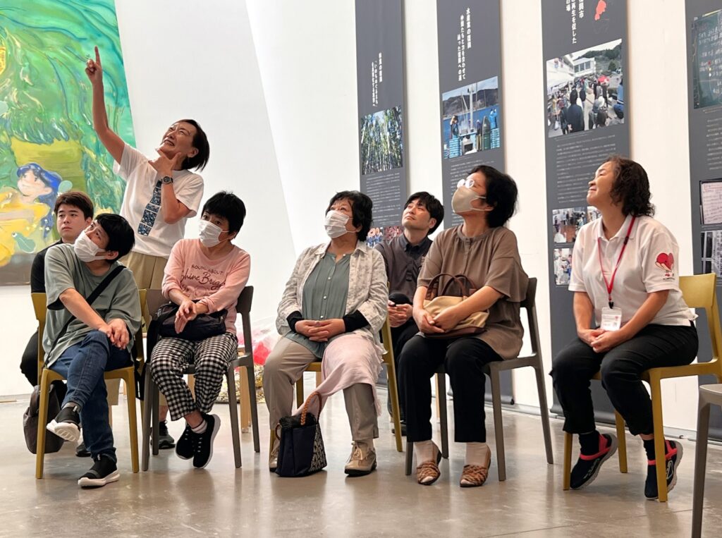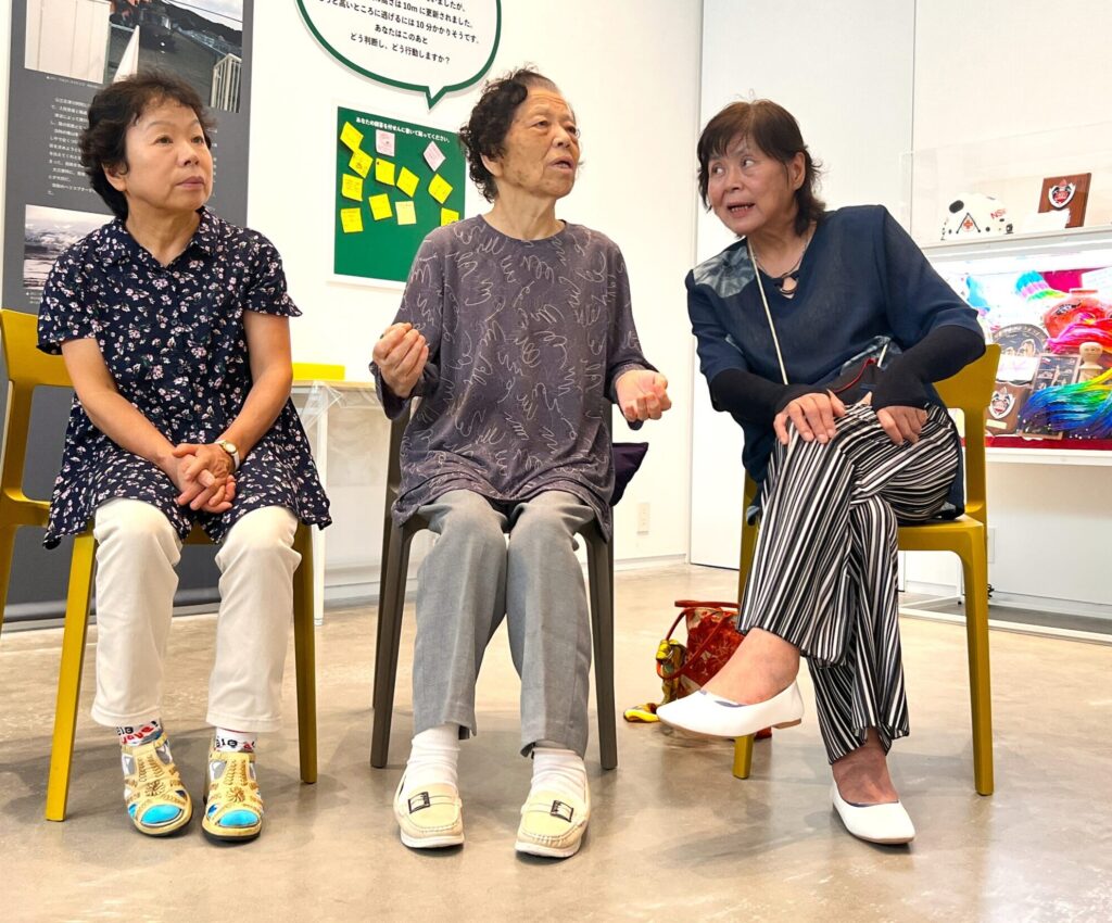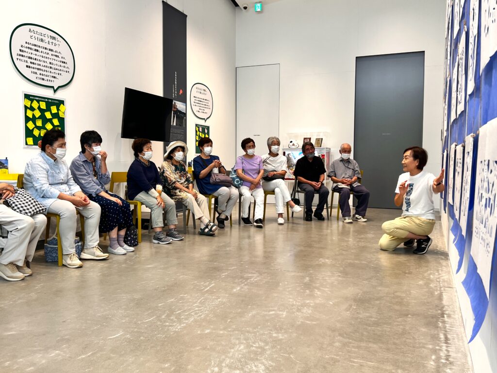2024.08.29 イベント 【開催レポート】「南三陸みんなのきりこ」鑑賞&交流会を開催しました 8月27日(火)、南三陸311メモリアルを会場に、「南三陸みんなのきりこ」鑑賞&交流会を開催いたしました。 今回の交流会は、メモリアルをはじめ町内50ヵ所できりこを展示する「南三陸みんなのきりこプロジェクト」の一環として開催。 ※南三陸みんなのきりこプロジェクトの詳細はこちら 入谷地区や歌津地区から、約30名のみなさまにお集まりいただき、作品制作当時の思い出や、震災前の町の思い出などを語り合いました。 今回ガイドを務めていただいたのは、「南三陸みんなのきりこプロジェクト」を主催するENVISI代表の吉川由美さん。 吉川さんより、自身と南三陸町との関わり、きりこをモチーフにしたアートプロジェクトのこれまでの歩み、そして様々なきりこを制作した当時の思い出などをお話いただきました。 歌津地区の三浦静江さんのきりこには、伊里前で営んでいた熊三商店の屋号と位牌などが描かれています。歌津の伊里前にあった熊三商店には、津波で鉄骨だけが残された建物に、不思議とまわりの家々の位牌が集まってきたという逸話が紹介されました。 また、伊勢神宮とのつながりもある戸倉地区の五十鈴神社で別当を務めてきた佐藤あき子さんのきりこには、真ん中に大きな鏡が描かれています。これは、自宅に保管していた大事な御鏡を、震災一週間前に神社に移したため津波でも流されずに無事だったというエピソードからでした。 じっくりときりこにまつわる話を聞いたり、懐かしい思いで話に花を咲かせながら、震災前の暮らしや思い出を自由に語り合いました。 今回の交流会開催にあたりご協力いただきました南三陸町社会福祉協議会のみなさま、お集まりいただいたみなさま、誠にありがとうございました。