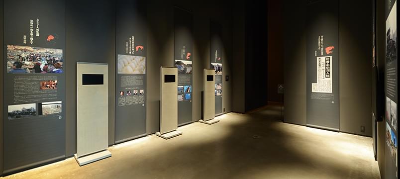 住民たちの証言等で構成されたラーニング・プログラム映像を上映します。この映像をもとに自分ごととして自然災害について考えるスペースです。(定員50 名)